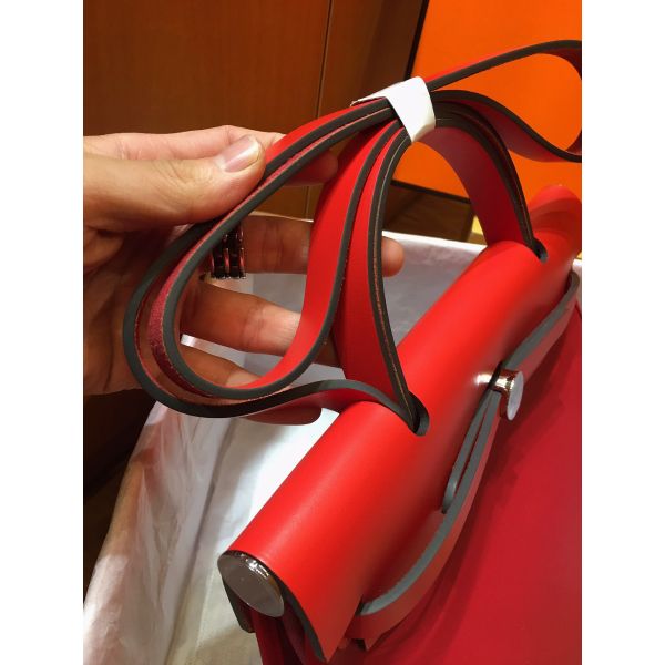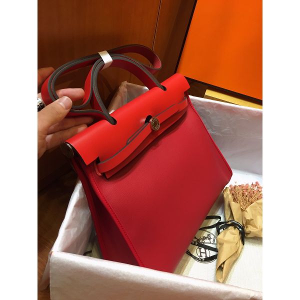 Hermes Herbag Zip 31cm Bag In Red Toile And Leather