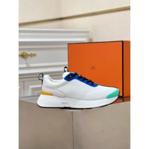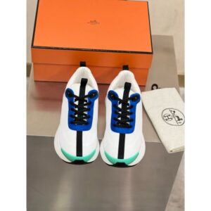Hermes Heros Sneakers in White Knit and Blue Suede
