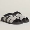 Hermes Oran Slide Sandals in White Swift Calfskin with Printed Lining