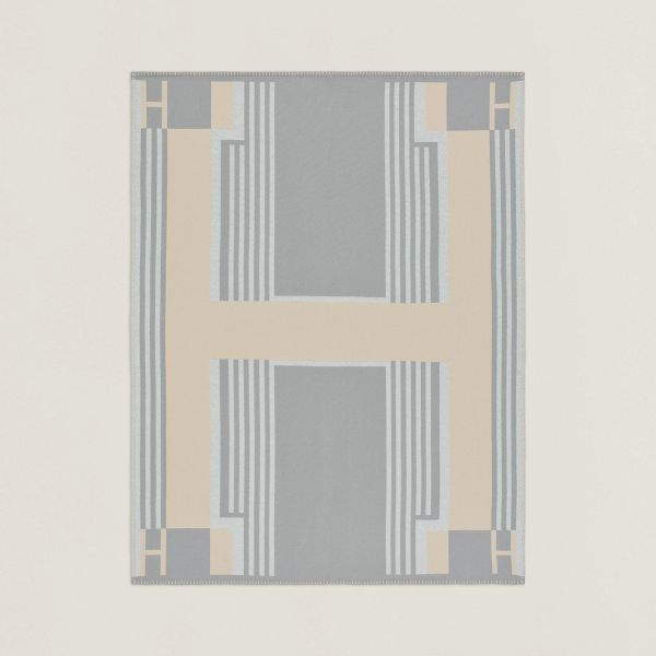 Created by the Hermès Studio, the “Ithaque” design is inspired by the Ionic columns that adorned the Greek temples. Its name derives directly from the Greek island fabled to have been the home of the hero Ulysses. The blanket features two mirrored columns that create an H, for a studied and graphical design, presenting a new take on the emblematic initials of Hermès.