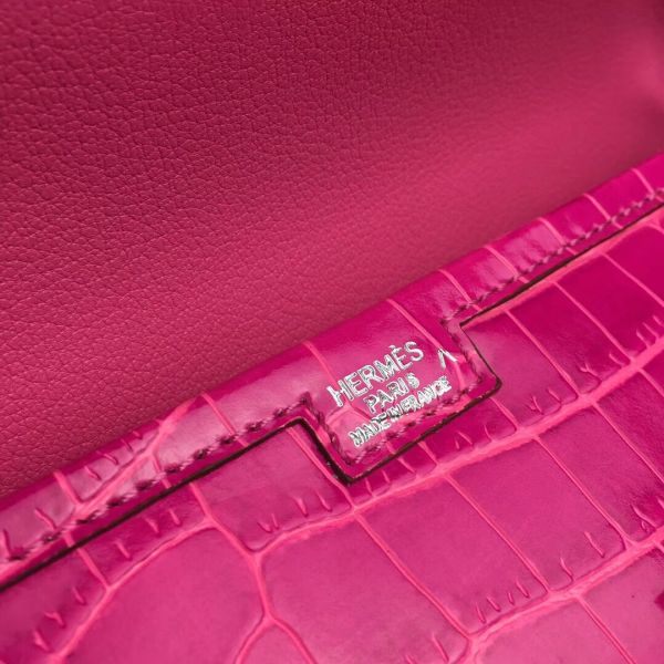 Hermes Jige Elan 29 Clutch In Rose Red Crocodile Leather