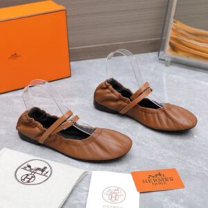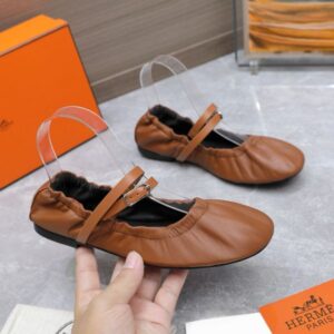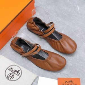Hermes creates wear-forever shoes that’ll elevate anything you style them with. These Jolly Ballet flats have been crafted from nappa leather in a sweet Mary Jane shape with square toes and signature wrap-around ankle strap.