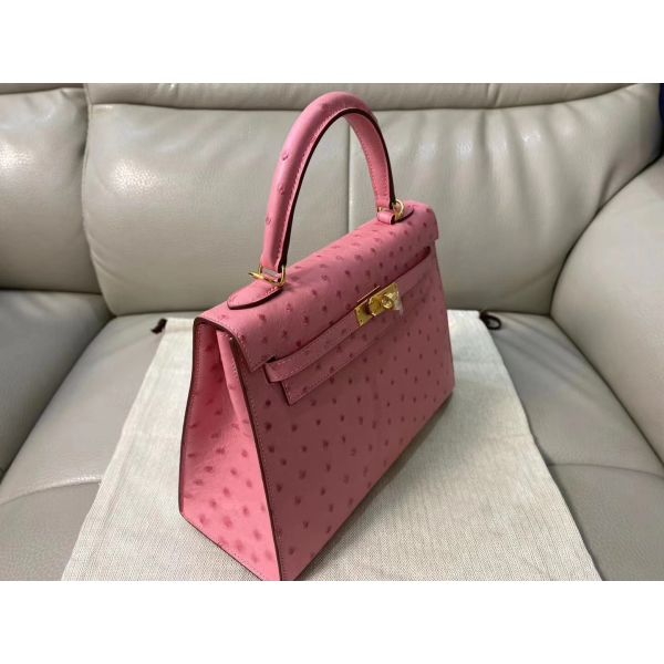 Hermes Kelly 25cm Handmade Bag In Terre Cutie Ostrich Skin