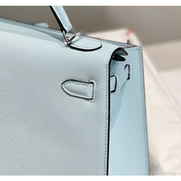 Hermes Kelly 25cm Sellier Bag In Blue Brume Epsom Leather