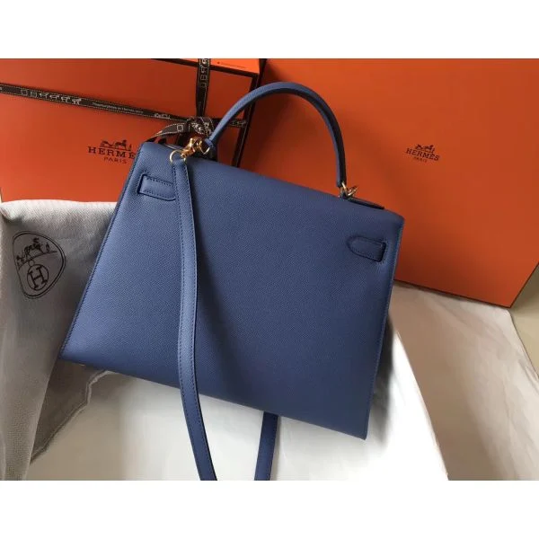 Hermes Kelly 32cm Bag In Blue Agate Epsom Leather GHW