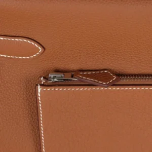 Boasting buckets of oversized appeal and measuring a generous 42cm, the Maxi Kelly stands as one of the largest variants within the Kelly family. It incorporates all of the classic design elements of the traditional Kelly, utilizing a Retourne construction to enhance its relaxed feel. Diverging from the standard leather shoulder strap, the Maxi Kelly opts for a wider webbing shoulder strap, accentuating its laid-back vibe. The Maxi Kelly also is equipped with a convenient back zippered pocket, mirroring the style seen on the Kelly Lakis.