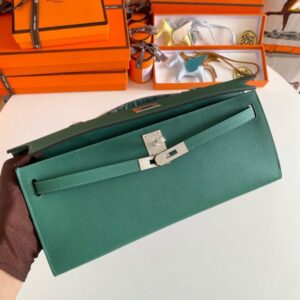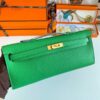 Hermes Kelly Pochette Handmade Bag In Vert Criquet Epsom Calfskin