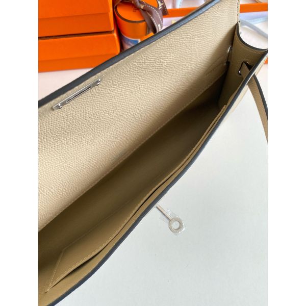 Hermes Kelly Pochette Handmade Bag In Vert Criquet Epsom Calfskin