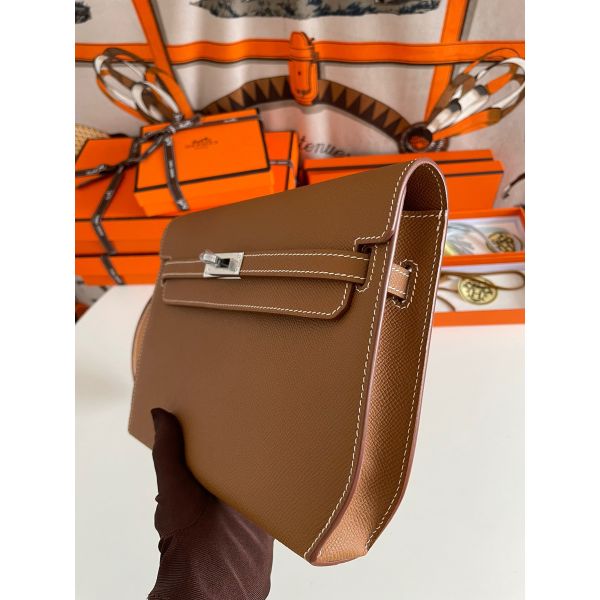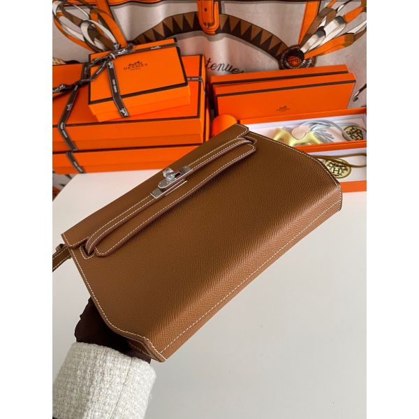 Hermes Kelly Depeches 25 Pouch in Gold Epsom Calfskin