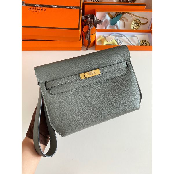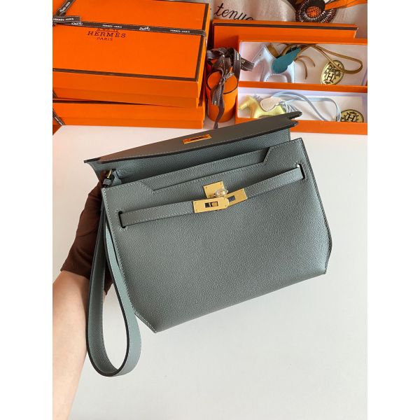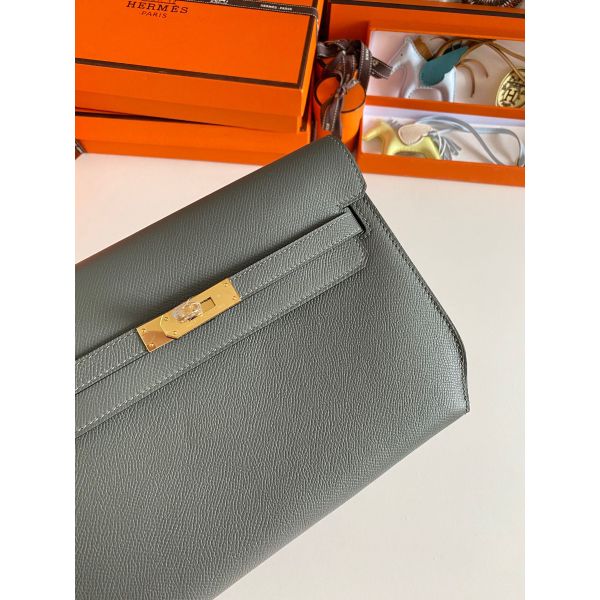 Hermes Kelly Depeches 25 Pouch in Vert Amande Epsom Calfskin