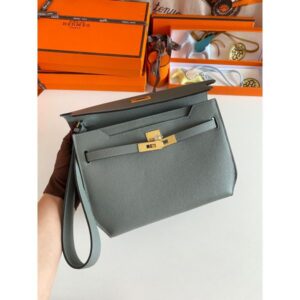 With its new clean lines, the Kelly DĂ©pĂȘches document holder combines Kelly’s iconic clasp with beveled corners and the construction codes of the Hermes menswear universe. With its rounded bottom and the purity of its leather surface, it asserts itself as a day-to-day essential to slide your laptop and documents in. A lightweight pouch and removable strap provides a more casual fit and completes the line with elegance.
