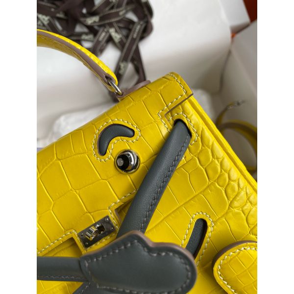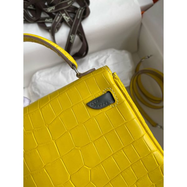Hermes Kelly Doll Bag in Jaune Ambre Matte Alligator Leather