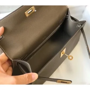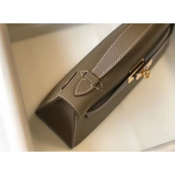 Hermes Kelly Pochette Bag In Taupe Grey Epsom Leather