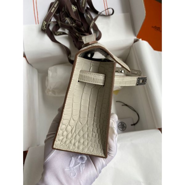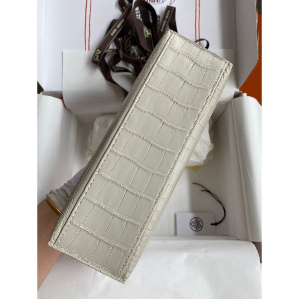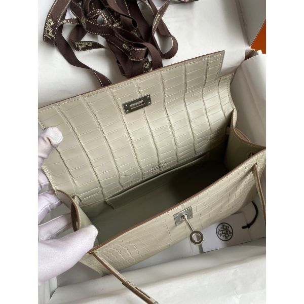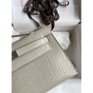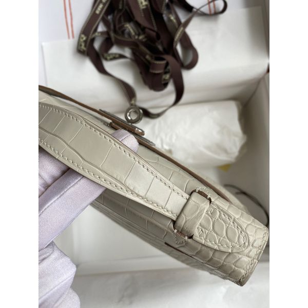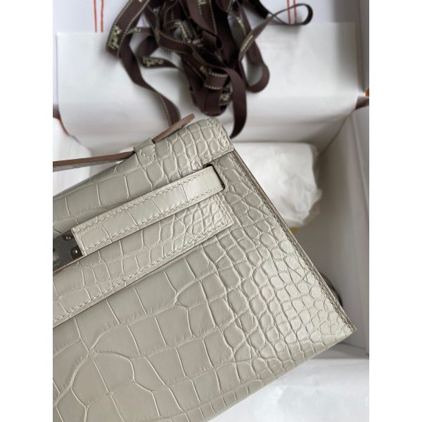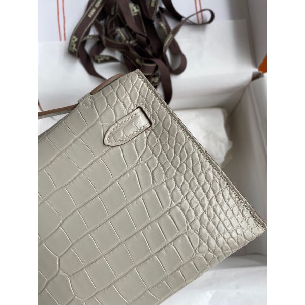 Hermes Kelly Pochette Handmade Bag In Beton Matte Alligator Leather