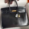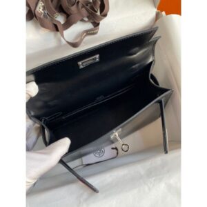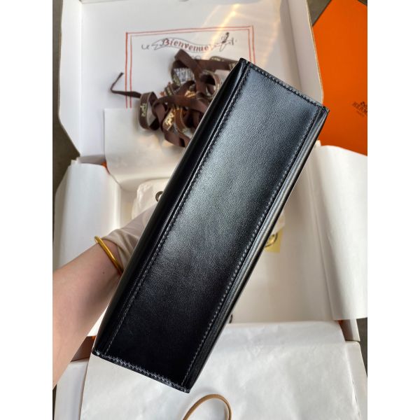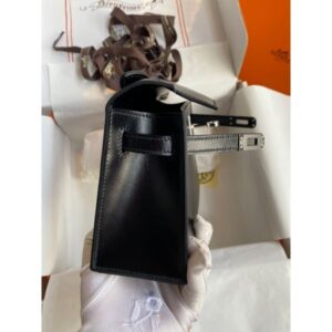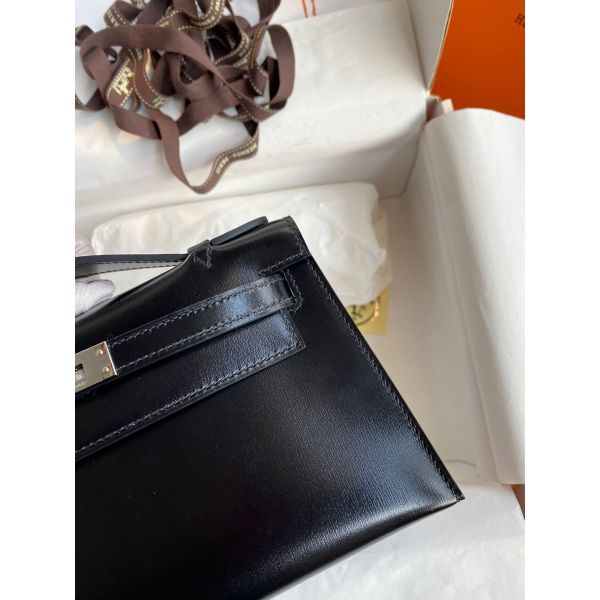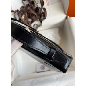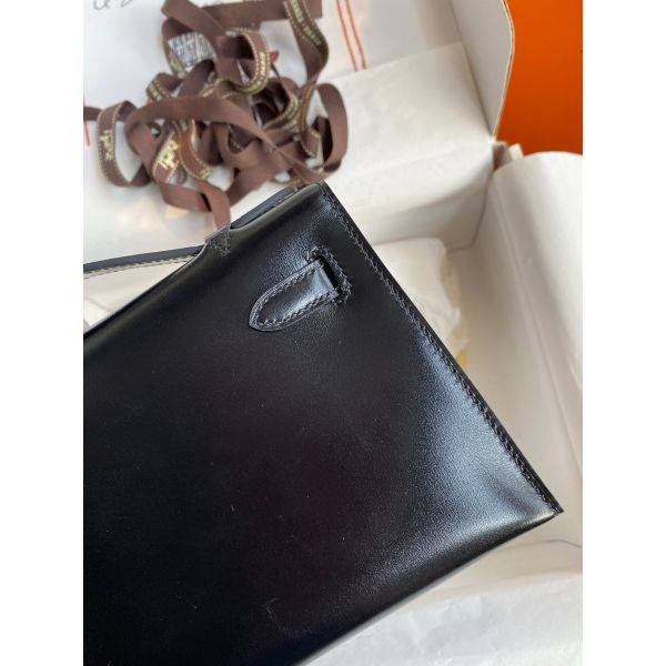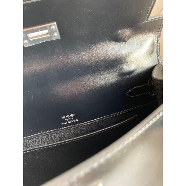 The Kelly Pochette was Jean-Paul Gaultier’s clutch interpretation of the classic Kelly bag. Introduced on the fall runway of his first collection for the House in 2004, the Kelly Pochette was an instant hit. Crafted from black Box calf leather – the first leather used by Hermès artisans to craft bags. The pochette is a true clutch with neither feet nor shoulder strap, It opens to a matte interior that is more than sufficient to hold your i-phone, makeup, cards, cash, and sunglasses and so on.
