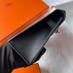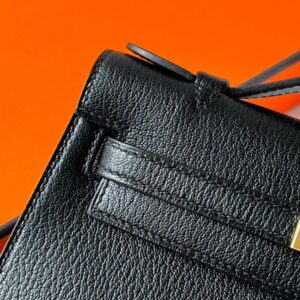 The Kelly Pochette was Jean-Paul Gaultier’s clutch interpretation of the classic Kelly bag. Introduced on the fall runway of his first collection for the House in 2004, the Kelly Pochette was an instant hit. This handbag is made from Chevre Mysore leather. The Kelly pochette is a true clutch with neither feet nor shoulder strap. It is remarkably roomy, holding more than the Kelly cut or the mini Kelly.