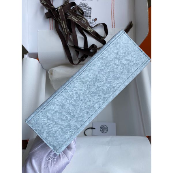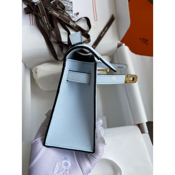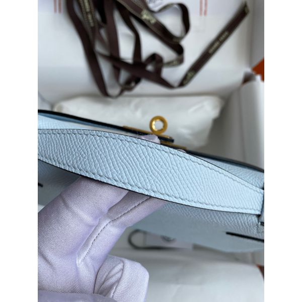 Hermes Kelly Pochette Handmade Bag In Blue Brume Epsom Calfskin