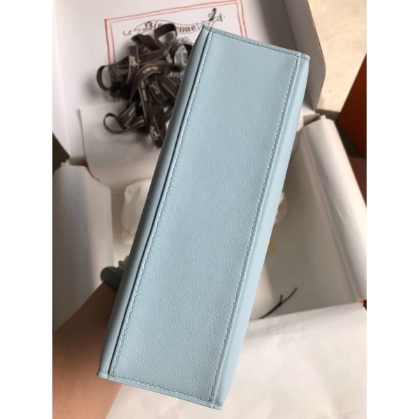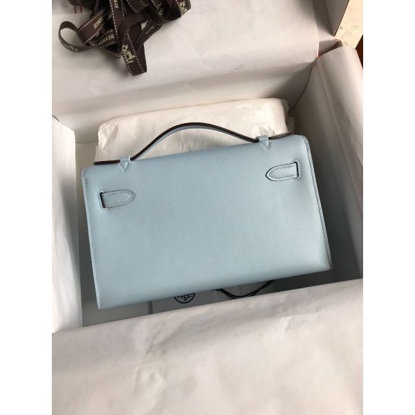 Hermes Kelly Pochette Handmade Bag In Blue Brume Swift Calfskin