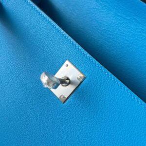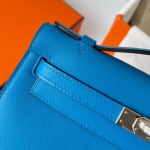 Hermes Kelly Pochette Handmade Bag In Blue Frida Swift Calfskin