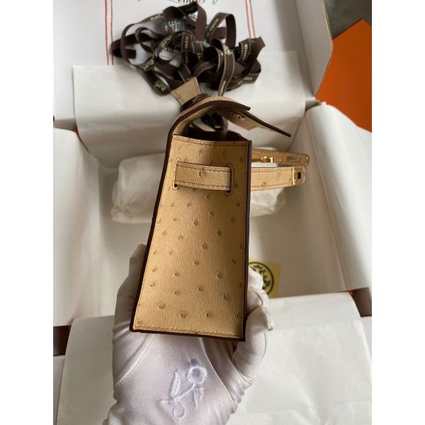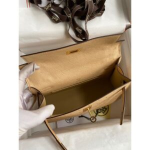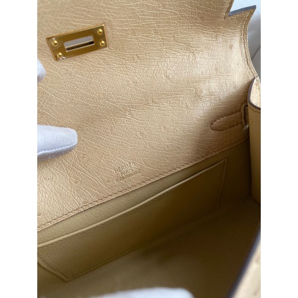 Hermes Kelly Pochette Handmade Bag In Chai Ostrich Leather