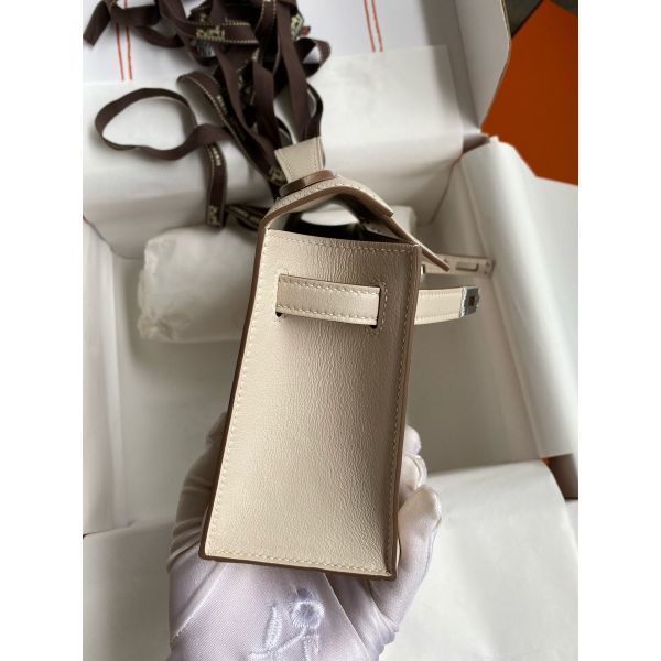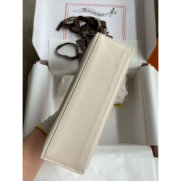 Hermes Kelly Pochette Handmade Bag In Craie Swift Calfskin
