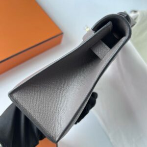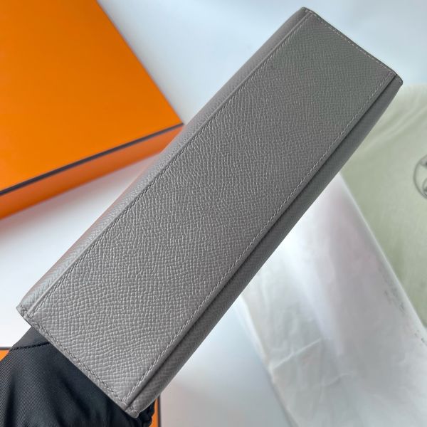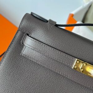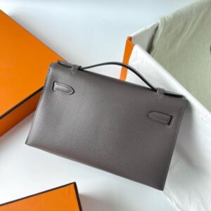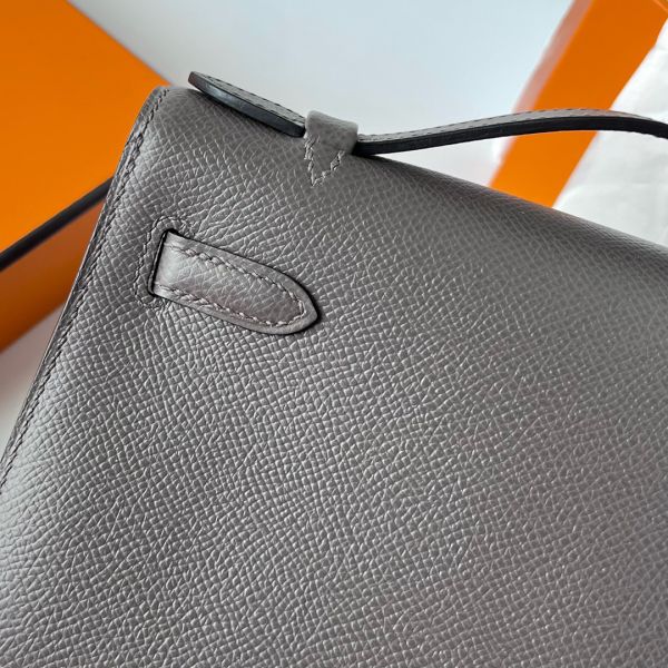 Hermes Kelly Pochette Handmade Bag In Etain Epsom Calfskin