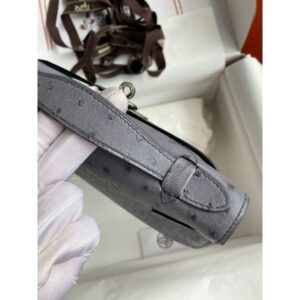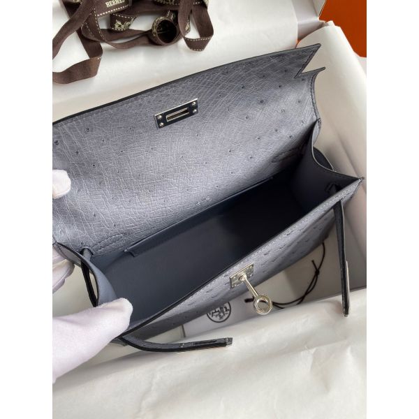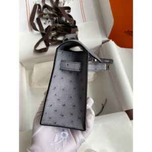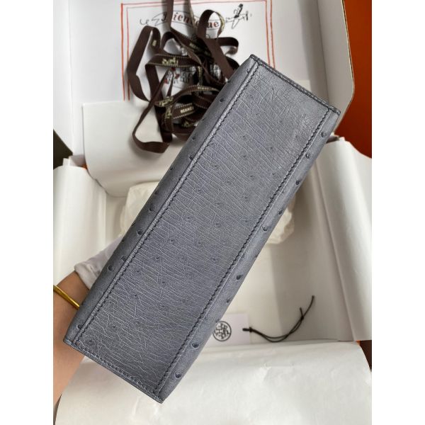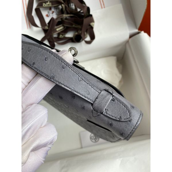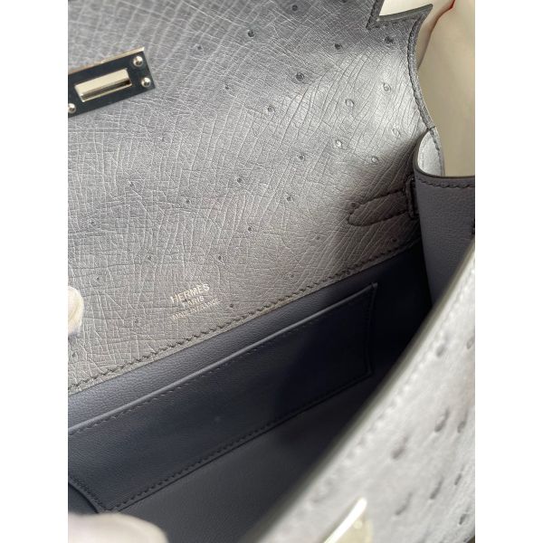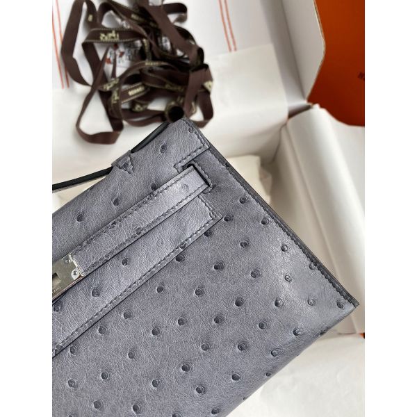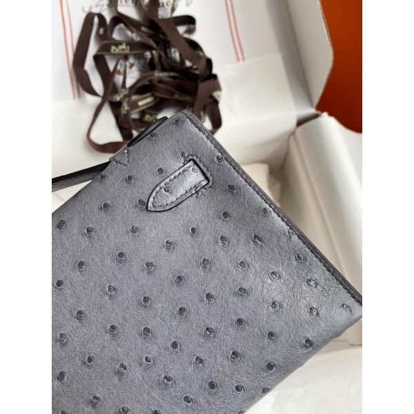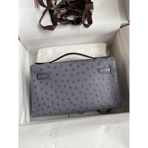 Hermes Kelly Pochette Handmade Bag In Gris Agate Ostrich Leather