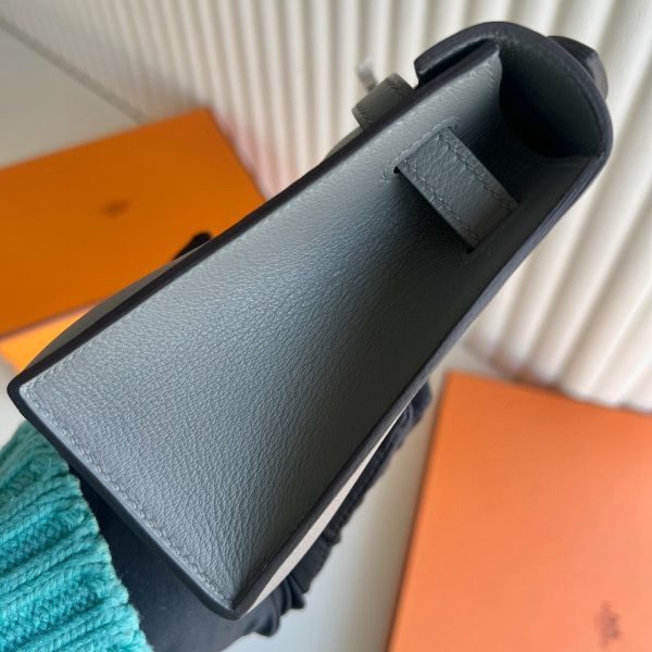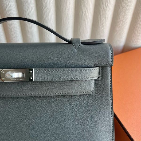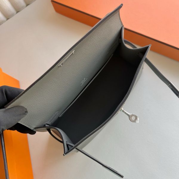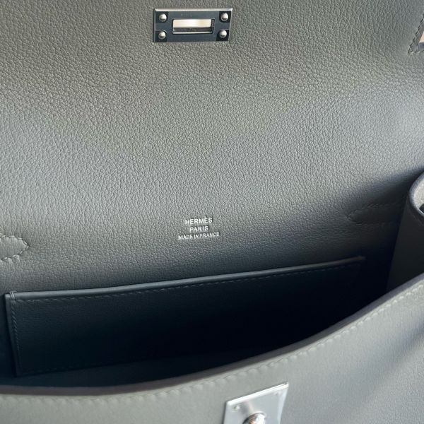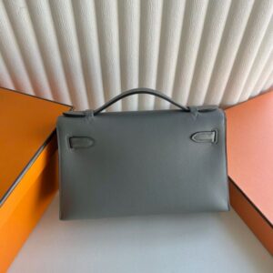 Hermes Kelly Pochette Handmade Bag in Gris Meyer Swift Calfskin