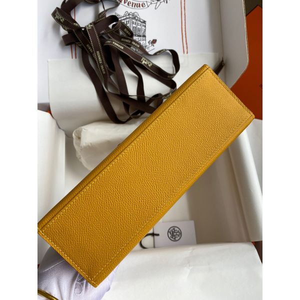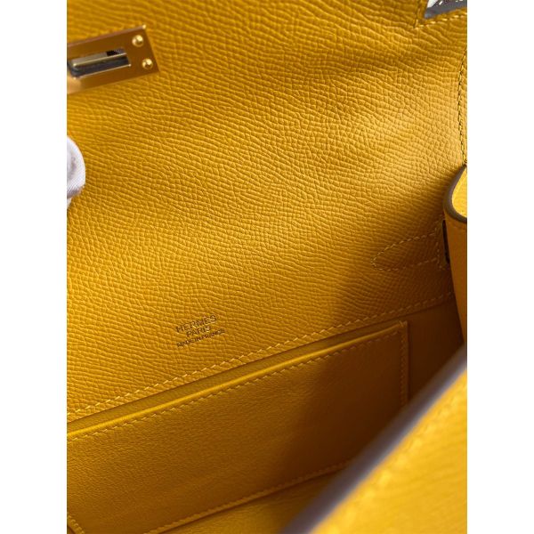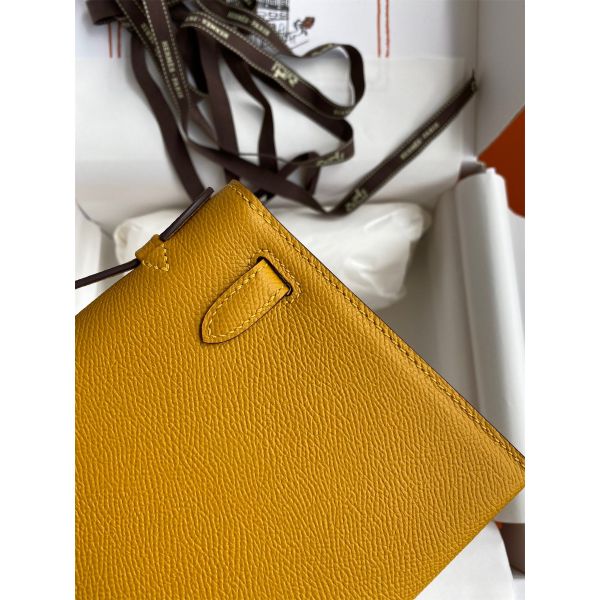 Hermes Kelly Pochette Handmade Bag In Jaune Ambre Epsom Calfskin