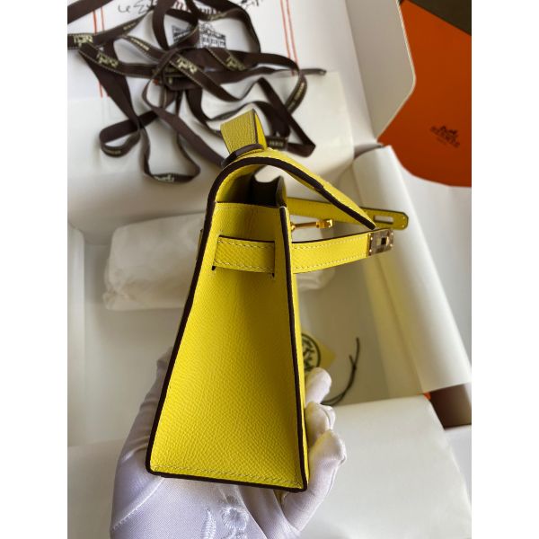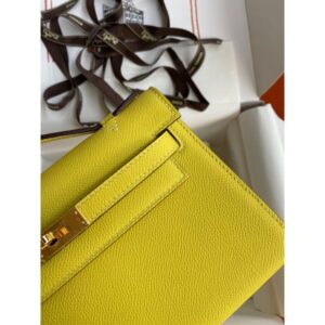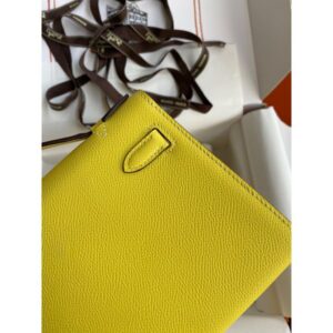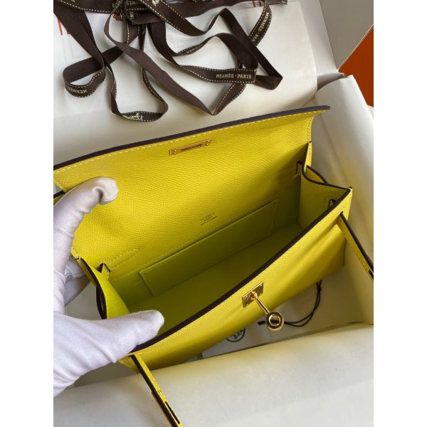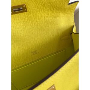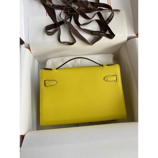 Hermes Kelly Pochette Handmade Bag In Lime Epsom Calfskin