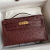 The Kelly Pochette was Jean-Paul Gaultier’s clutch interpretation of the classic Kelly bag. Introduced on the fall runway of his first collection for the House in 2004, the Kelly Pochette was an instant hit. This handbag is made from Epsom calfskin, which named from a town in south-east England that is famous for its horse races. The Kelly pochette is a true clutch with neither feet nor shoulder strap. It is remarkably roomy, holding more than the Kelly cut or the mini Kelly.