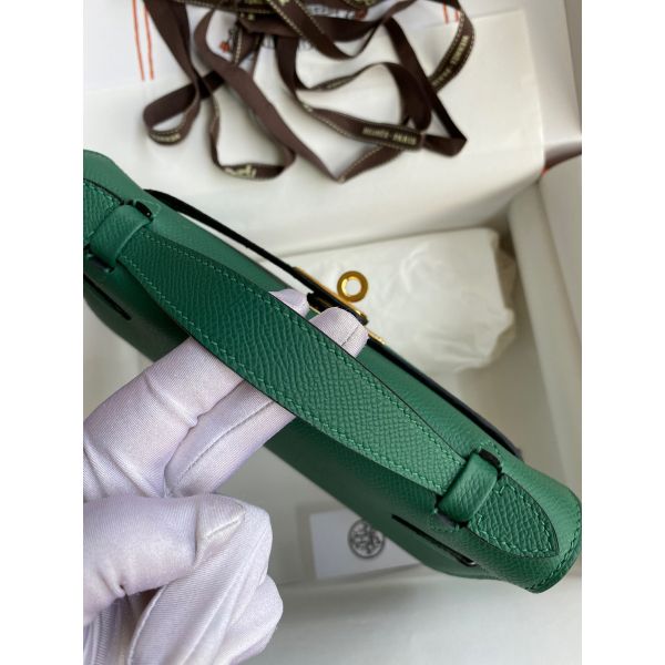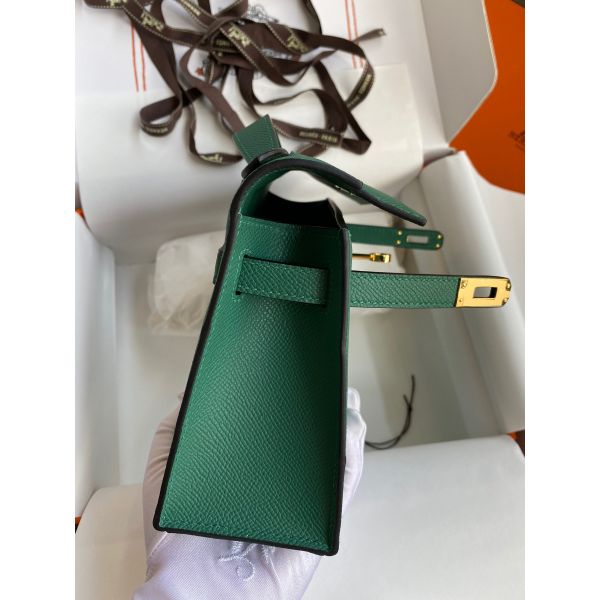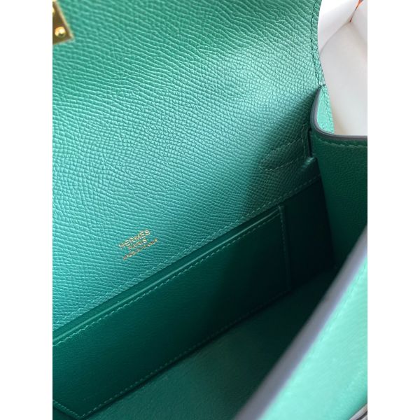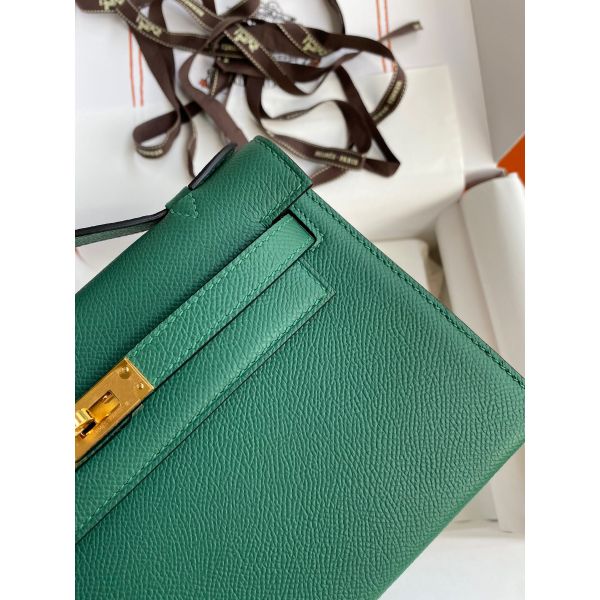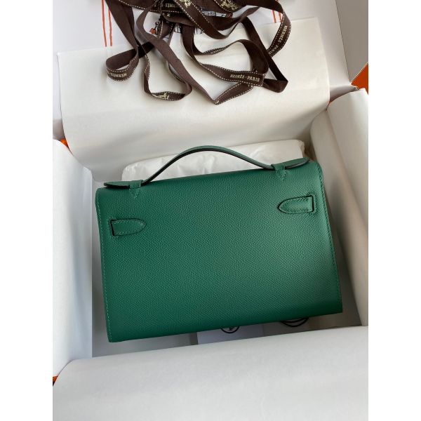 Hermes Kelly Pochette Handmade Bag In Malachite Epsom Calfskin