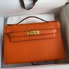 The Kelly Pochette was Jean-Paul Gaultier’s clutch interpretation of the classic Kelly bag. Introduced on the fall runway of his first collection for the House in 2004, the Kelly Pochette was an instant hit. This handbag is made from Epsom calfskin, which named from a town in south-east England that is famous for its horse races. The Kelly pochette is a true clutch with neither feet nor shoulder strap. It is remarkably roomy, holding more than the Kelly cut or the mini Kelly.