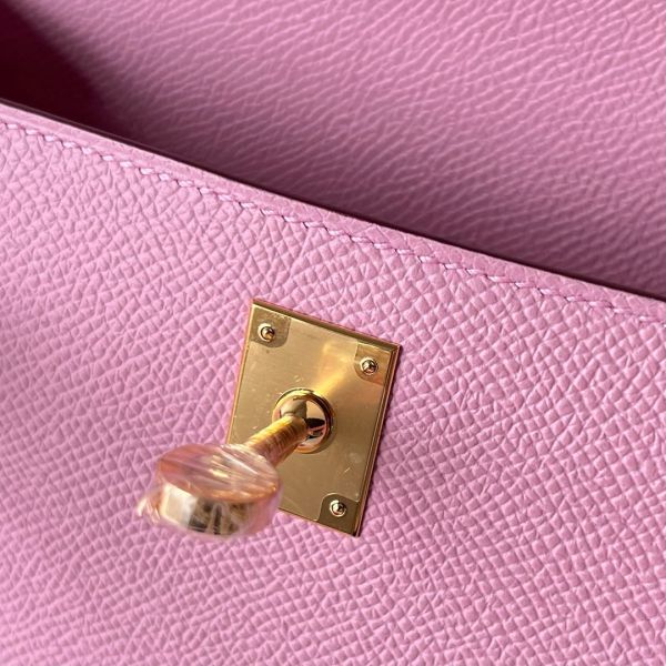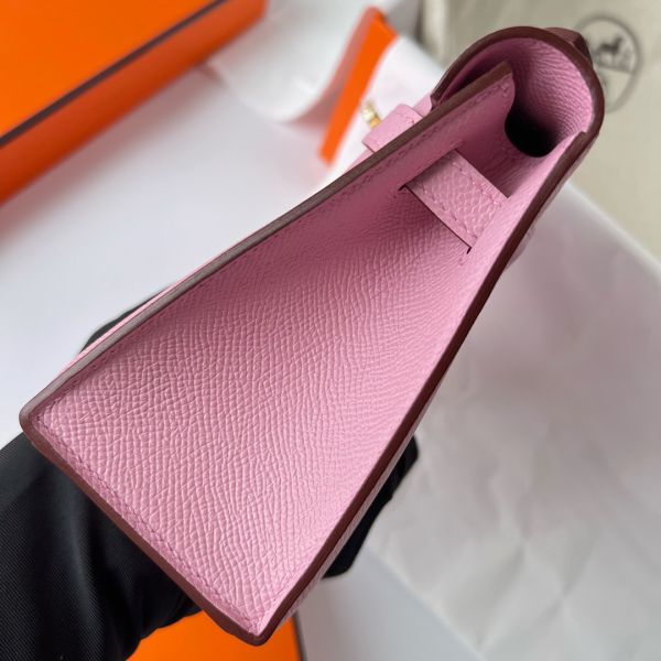 Hermes Kelly Pochette Handmade Bag In Mauve Sylvestre Epsom Calfskin
