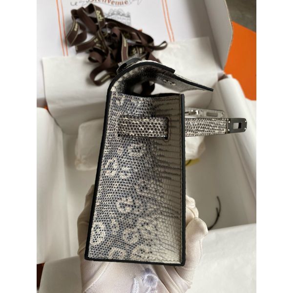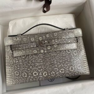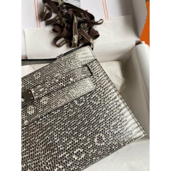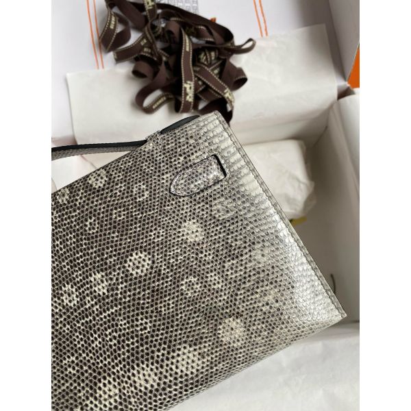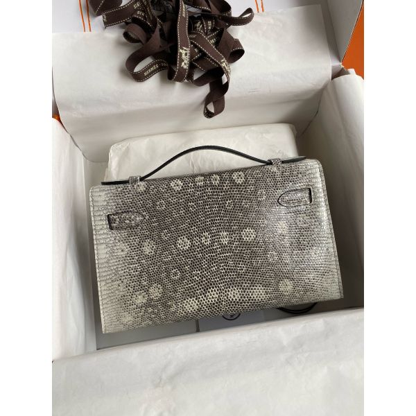 Hermes Kelly Pochette Handmade Bag In Natural Lizard Skin