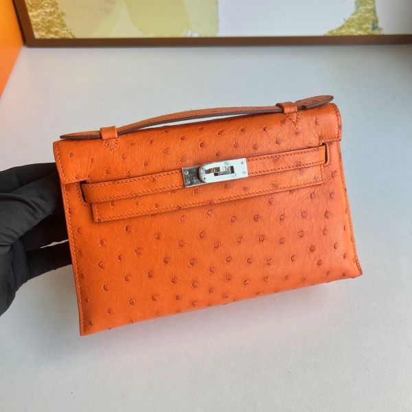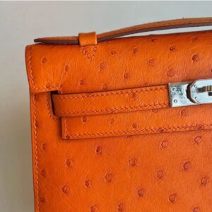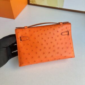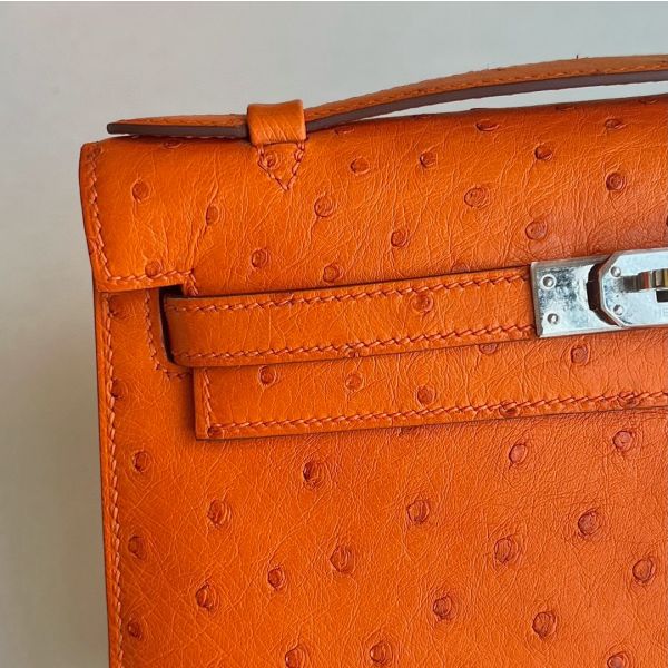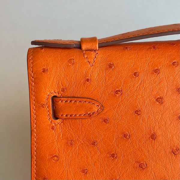 Hermes Kelly Pochette Handmade Bag in Orange Ostrich Leather