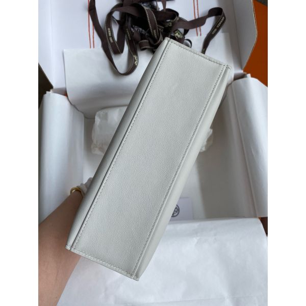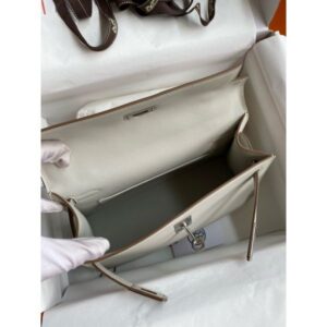 Hermes Kelly Pochette Handmade Bag In Pearl Grey Swift Calfskin