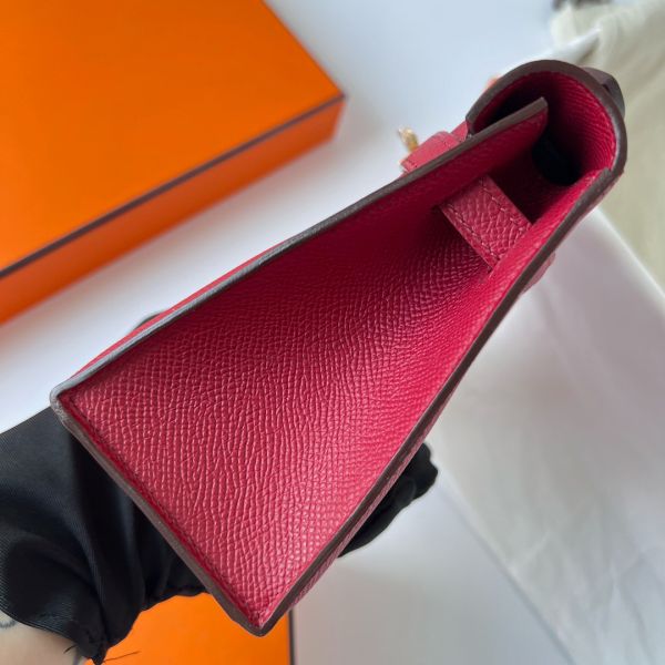 Hermes Kelly Pochette Handmade Bag In Rouge Grenat Epsom Calfskin