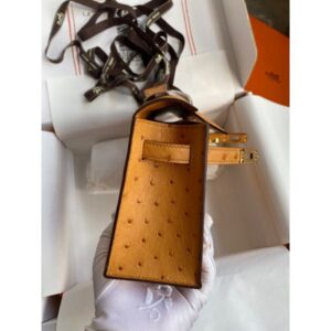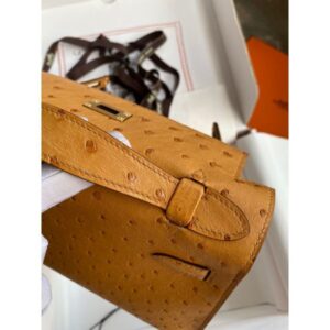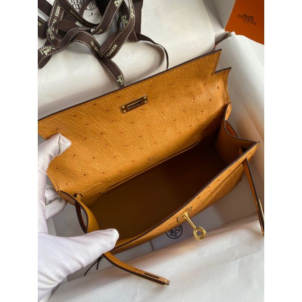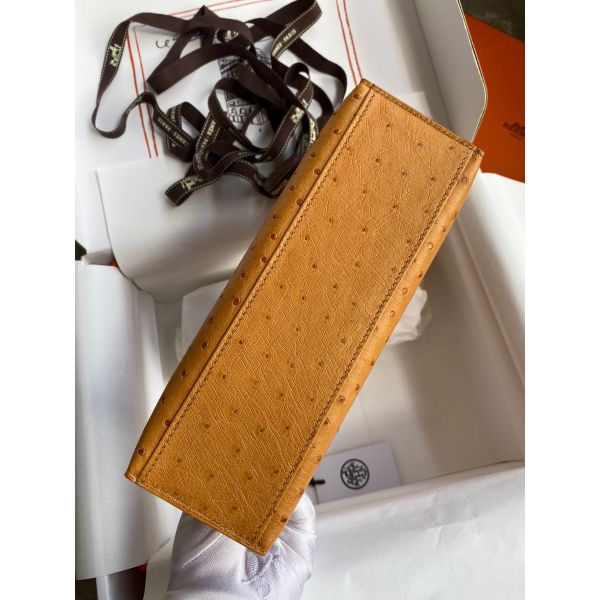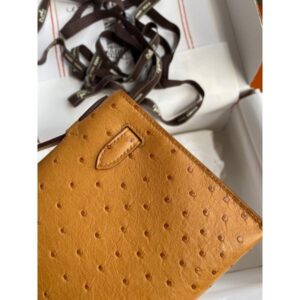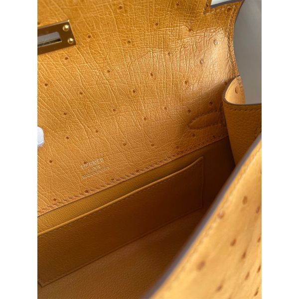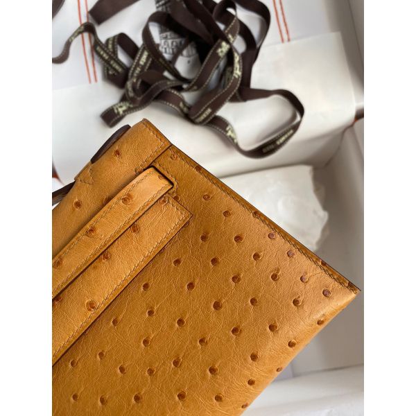 Hermes Kelly Pochette Handmade Bag In Sesame Ostrich Leather