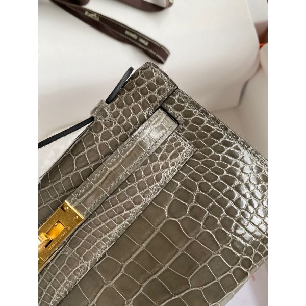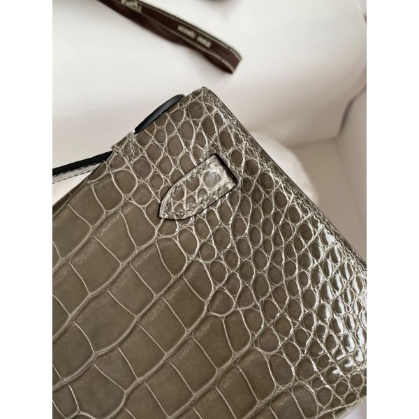 Hermes Kelly Pochette Handmade Bag In Taupe Shiny Alligator Leather