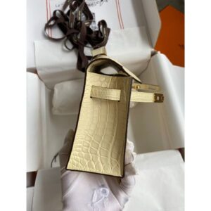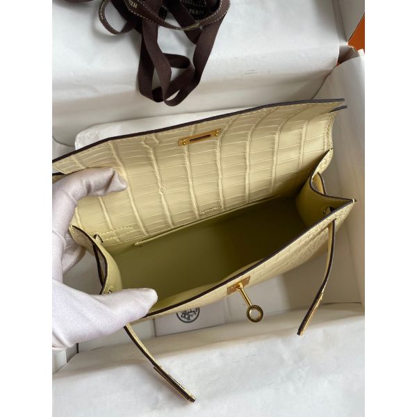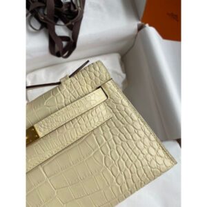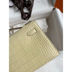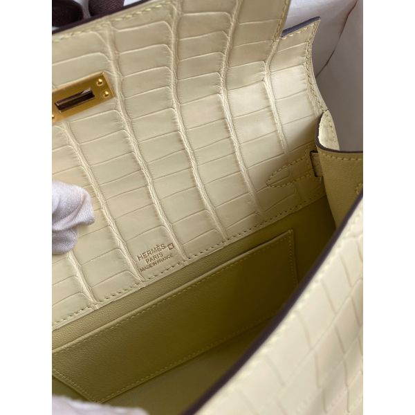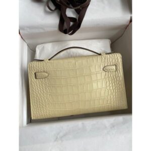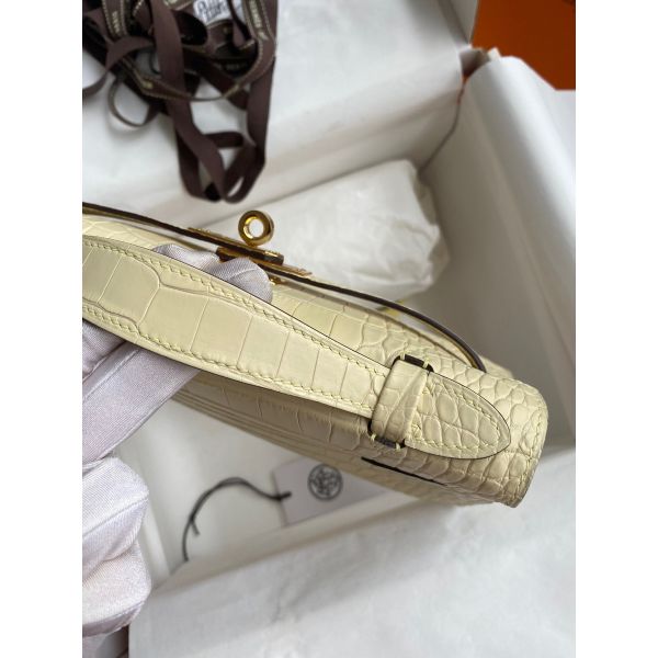 Hermes Kelly Pochette Handmade Bag In Vanille Matte Alligator Leather