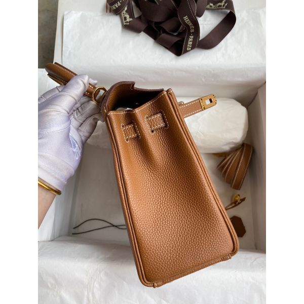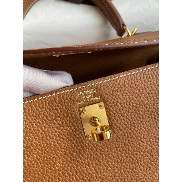 Hermes Kelly Retourne 25 Handmade Bag In Gold Clemence Leather