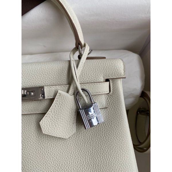 Hermes Kelly Retourne 25 Handmade Bag In Mushroom Clemence Leather