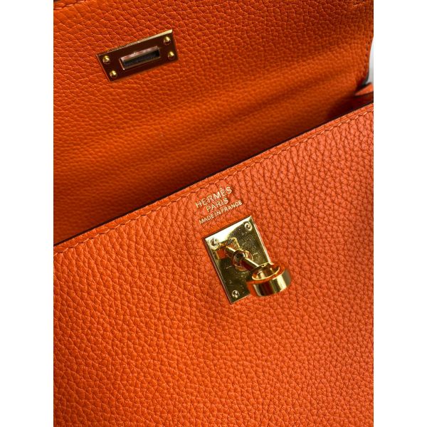 Hermes Kelly Retourne 25 Handmade Bag In Orange Clemence Leather