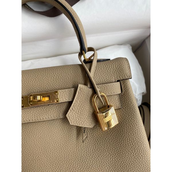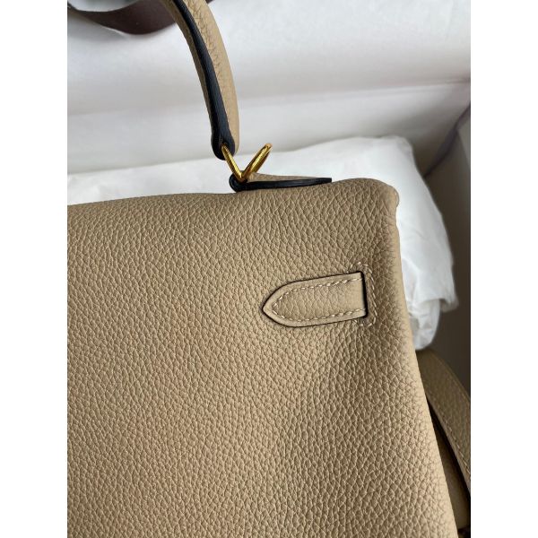 Hermes Kelly Retourne 25 Handmade Bag In Trench Clemence Leather