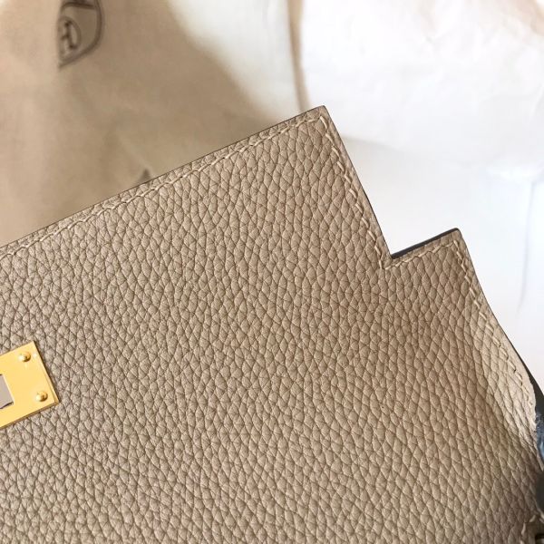 Hermes Kelly Retourne 28 Handmade Bag In Tourterelle Clemence Leather
