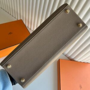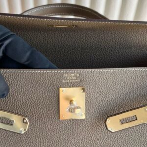 Hermes Kelly Retourne 35 Handmade Bag in Taupe Clemence Leather