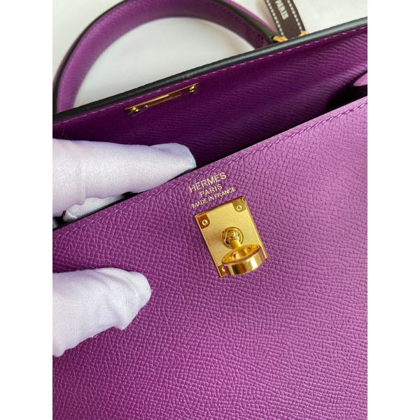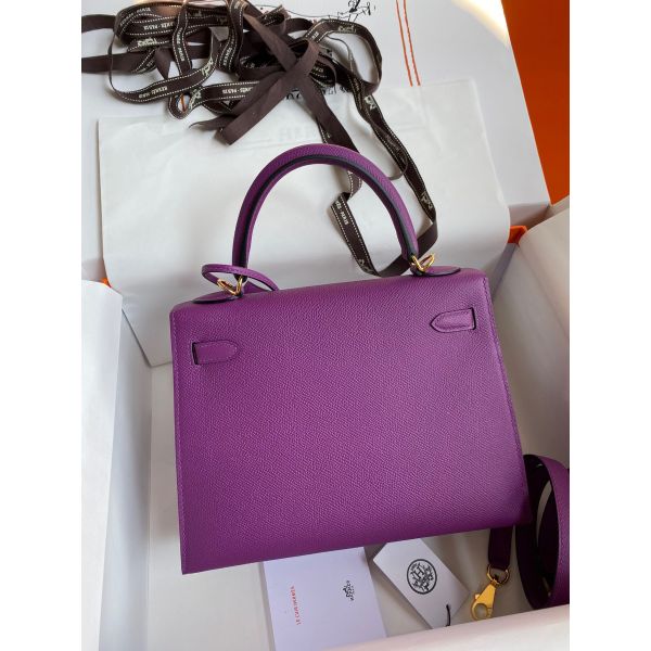 Hermes Kelly Sellier 25 Handmade Bag In Anemone Epsom Calfskin