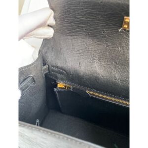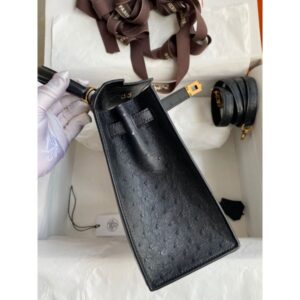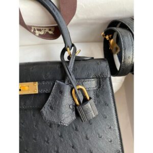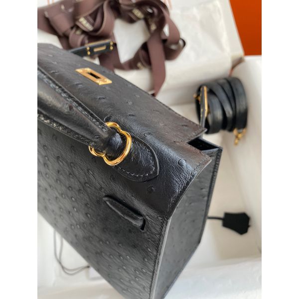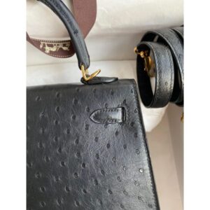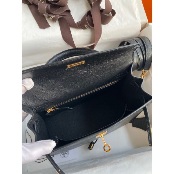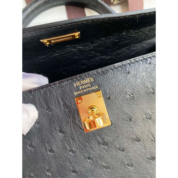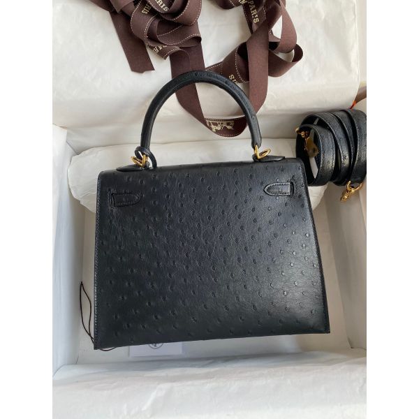 Hermes Kelly Sellier 25 Handmade Bag In Black Ostrich Leather