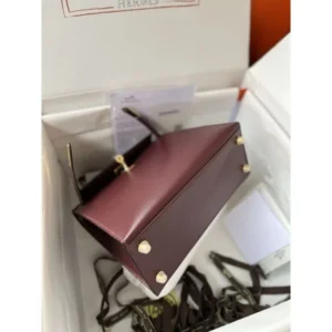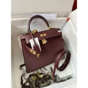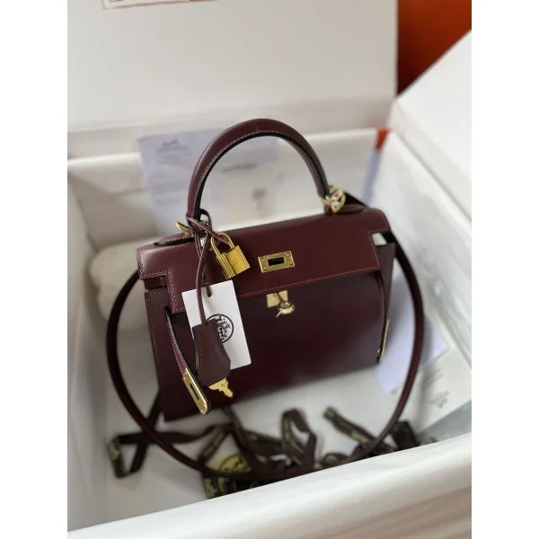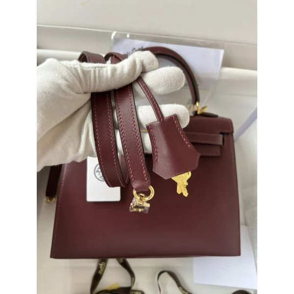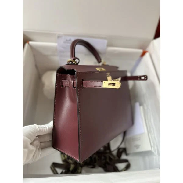 Hermes Kelly Sellier 25 Handmade Bag in Bordeaux Box Calfskin